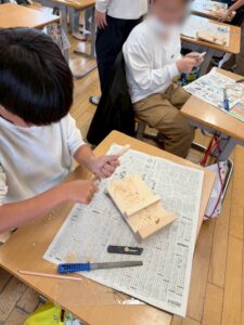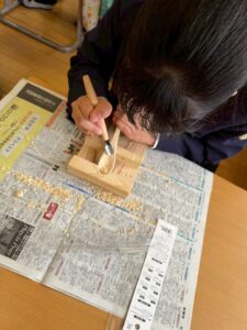 のみ ナイフ 鉄やすり サンドペーパーなどを使って かつらぎ町産のヒノキの 世界で1つのマイスプーンが出来ました。